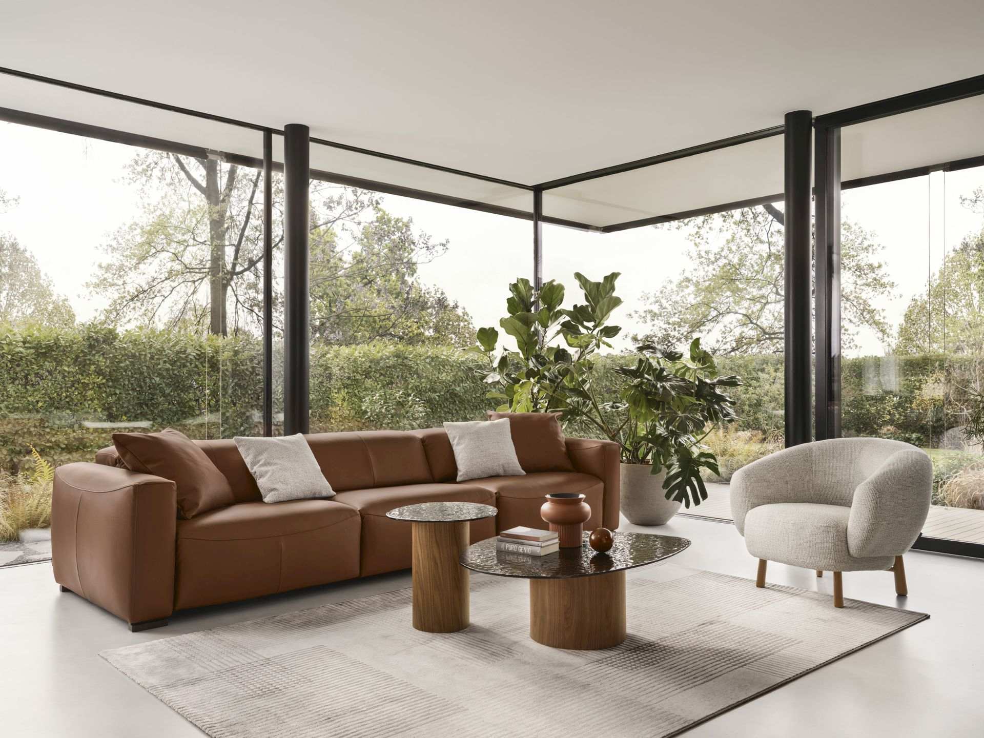 Do łask wraca także klasyka w nowoczesnym wydaniu, szczególnie sofy wykonane z brązowej skóry. To ponadczasowy materiał, który zyskuje obecnie nową odsłonę, czyli matowe, naturalnie starzone wykończenia. Miękkość skóry sprawiają, że skóra staje się elementem ocieplającym wnętrze, a nie dominującym. Brązowa skóra dodaje pomieszczeniu charakteru, wprowadzając jednocześnie nutę luksusu, elegancji i historii. Jej popularność rośnie zarówno w przestrzeniach nowoczesnych loftów, jak i w klasycznych aranżacjach, inspirowanych stylem vintage.
