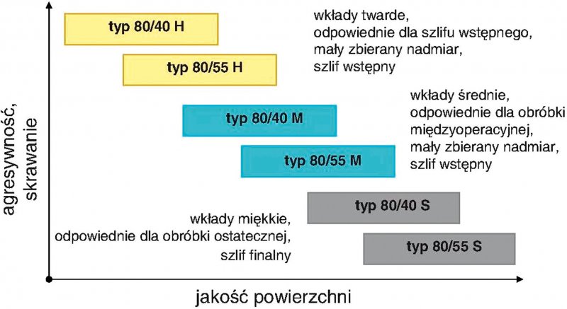 Nowo opracowany profil wkładu zwiększa wydajność pracy. Jego zaokrąglone krawędzie ułatwiają także zamontowanie, przez co minimalizują ryzyko zranienia operatora. Żłobienia na górnej części dokładnie określają powierzchnię styku i pozwalają na precyzyjne szlifowanie. Na spodniej stronie wkład posiada żebrowanie zapewniające chłodzenie podczas pracy.