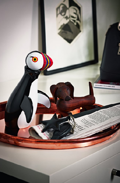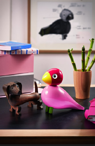 Kay Bojesen znany jest nie tylko dzięki Małpce, ale całej serii drewnianych zwierząt, które zaprojektował w latach 1934-1955. W jego kolekcji znajdziemy drewnianego hipopotama, słonia, królika, ptaki i niedźwiedzia. Projektant nie bał się eksperymentować z kolorami dlatego wśród jego prac znajdziemy też te bardziej kolorowe, między innymi drewnianego Puffina, niezwykle kolorowe ptaki (każdy z nich ma swoje imię), a także ubranych w czerwono-niebieskie mundury Wartowników. Wszystko wykonane przy zastosowaniu naturalnych materiałów, przede wszystkim drewna. Bojesen tworzył przedmioty o okrągłych liniach, kolorowe i delikatne w dotyku. W bardzo umiejętny sposób połączył klasykę z nowoczesnością: drewno z wyjątkowymi i ciepłymi barwami. płynne kształty