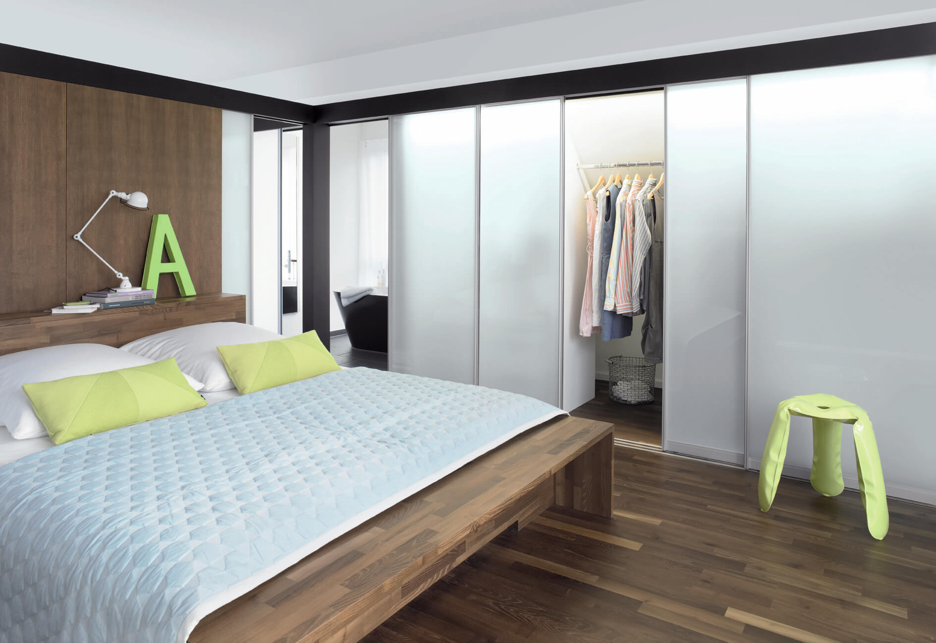 Systemy Raumplus dają możliwość zastosowania w wystroju aranżacji szklanych tafli o znacznych gabarytach. Przykładem są pozbawione szprosów drzwi o wysokości do 321 cm. Skrzydło wypełnione ogromną szybą jest stabilne, a jego przesuwanie odbywa się lekkim, płynnym ruchem. Umożliwia to mocna i stabilna konstrukcja profili bocznych oraz jakość i nośność rolek dolnych dochodząca do 180 kg. Poza całkowicie przezroczystym szkłem Raumplus stosuje też wersje lekko przydymione, błyszczące, barwione, w szerokim wyborze kolorów (lacobel) oraz matową, białą taflę (matelac). Na życzenie na szklanych powierzchniach mogą pojawić się wygrawerowane napisy lub dekoracyjne wzory.