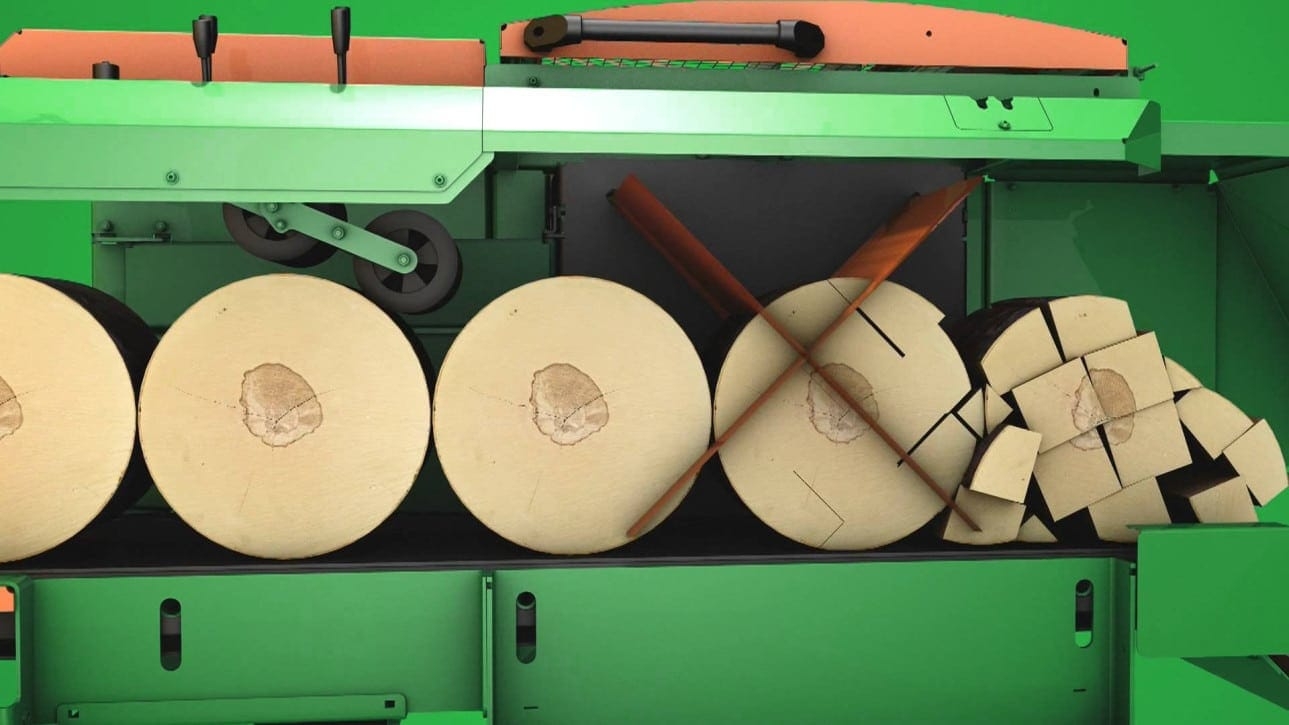 pracy z widiową tarczą pilarki o średnicy 100 cm z ostrzami z węglików spiekanych, która wyróżnia się długą żywotnością i długim okresem eksploatacji. Jest to maszyna typu trzy w jednym – z jej wykorzystaniem można nie tylko przecinać i rozłupywać drewno opałowe, ale także produkować drewno podpałkowe do bezpośredniego rozpalenia w piecu. Od załadunku aż do procesu cięcia operator kontroluje wszystkie czynności. Krzywe kłody można lepiej pozycjonować opcjonalnym manipulatorem kłód. Profesjonalne doprowadzanie kłód zapewnia możliwość ciągłego załadunku, a wciąganie kłód do zespołu tnącego realizowane jest wydajnym taśmociągiem wciągającym. Systemy buforowania z przenośników wzdłużnych i poprzecznych można agregować ze sobą według indywidualnych potrzeb.