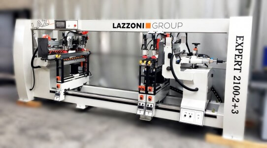 Lazzoni Group tworzy nową, silną grupę obrabiarek stworzonych dla małych zakładów stolarskich oraz przemysłu. Dzięki współpracy z producentami z całej Europy, grupa Lazzoni zdobyła duże doświadczenie w branży meblarskiej oraz stolarskiej. Znając potrzeby rynku, firma jest w stanie sprostać nawet najsurowszym wymaganiom pod względem jakości oferowanych rozwiązań. Doskonałym tego przykładem może być wiertarka Expert 2100-2+3, która zaopatrzona jest w dwa agregaty poziome oraz trzy jednostki pionowe. Każdy z agregatów poziomych wyposażony jest w 21 wrzecion. Jednostki wertykalne przesuwane są na prowadnicach liniowych, a pozycjonowanie agregatów odbywa się za pomocą elektronicznych liczników. Każda z 3 głowic pionowych posiada po 15 wrzecion.