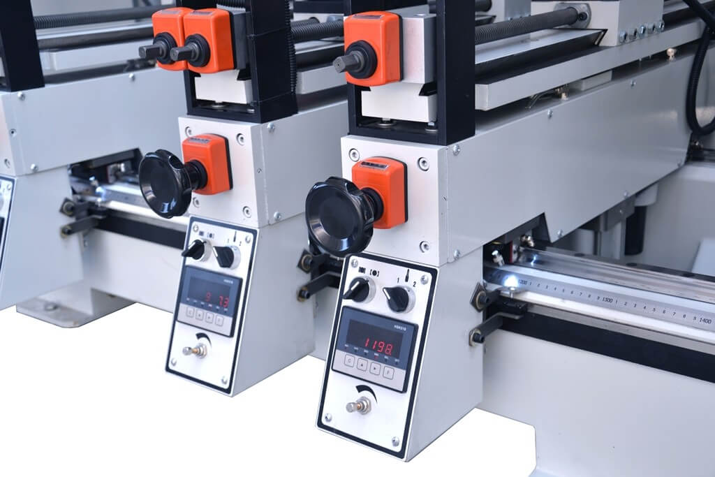- 3 x agregat pionowy 15 wrzecion, przesuwny na prowadnicach liniowych, obrotowy 0 i 90 stopni;