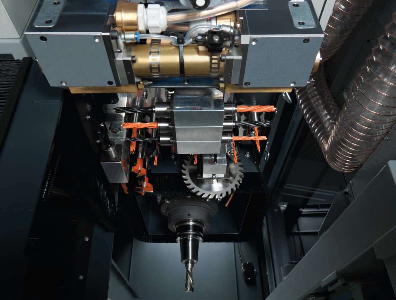Elektrowrzeciono główne o mocy 9 lub 12 kW (S6) zapewnia maszynie najwyższą wydajność i pozwala na precyzyjną obróbkę bardzo różnorodnych materiałów. Jest to możliwe, gdyż moc z elektrowrzeciona bezpośrednio przenosi się na pracujące w materiale narzędzie. Obraca się ono z prędkością 24000 obr./minutę i wyposażone jest w wysokiej jakości, charakteryzujące się wydłużoną żywotnością, łożyska ceramiczne. Posiada także pokrywę odciągową regulowaną na wysokość automatycznie lub ręcznie, w zależności od modelu.
