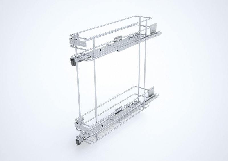Cargo mini to systemy o ogromnej funkcjonalności i eleganckim wyglądzie połączone z doskonałą jakością wykonania i konkurencyjnymi cenami. Produkty dostępne są do szafek o wymiarach: 150, 200, 300 oraz 400 mm. Montuje się je do dna lub boku (po stronie lewej) szafki, posiadają możliwość zamontowania frontu meblowego. Wszystkie wyposażone są w prowadnice kulkowe z systemem pełnego wysuwu z cichym domykiem.