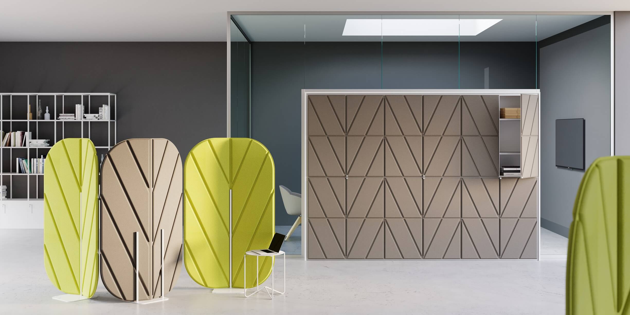 Szerokie upowszechnienie tej formy komunikacji zwiększyło zapotrzebowanie na przystosowane do niej wnętrz. Stąd popularność rozmaitych budek i paneli akustycznych. Rozwiązania poprawiające akustykę (totemy i parawany) pojawiają się także w domach i domowych biurach. Za to do biur wkraczają klimaty bardziej socjalizujące. Pandemiczna izolacja uświadomiła nam, jak istotny jest kontakt z innymi ludźmi, wymiana myśli, doświadczeń, wiedzy. Sprzyjają temu sprzęty i rozwiązania „domowe”: okrągłe stoły, rozłożyste sofy, duża ilość roślin, miękkie tkaniny, wyraziste faktury, stonowane, naturalne kolory, łagodniejsze oświetlenie i zastępowanie szklanych przegród redukującymi poziom hałasu panelami. W ten nowy obraz wnętrz biurowych znakomicie wpisują się choćby tegoroczne mediolańskie propozycje marek Prostoria, Tacchini czy Kartell (marka dostępna w salonie Koma w Domotece).