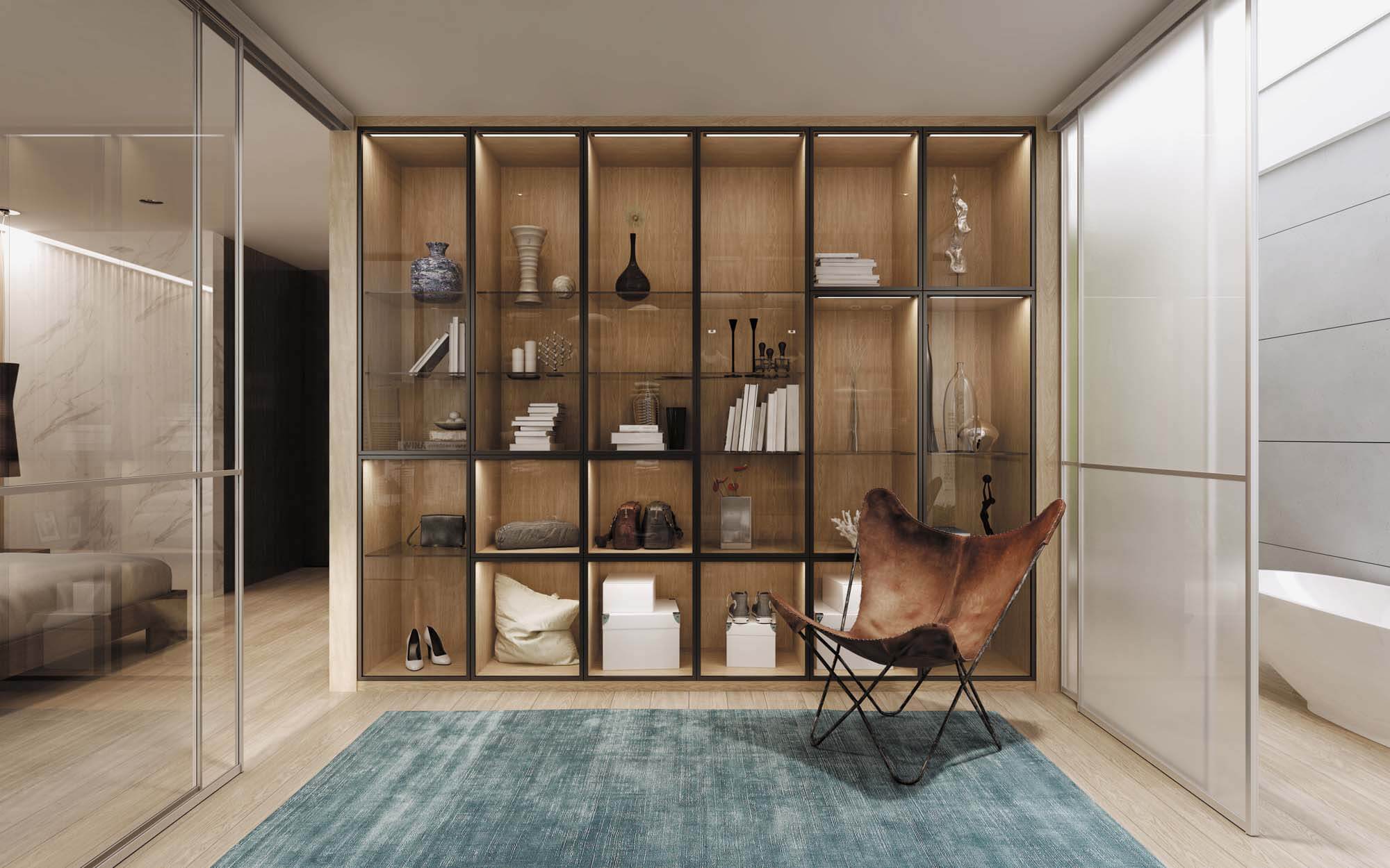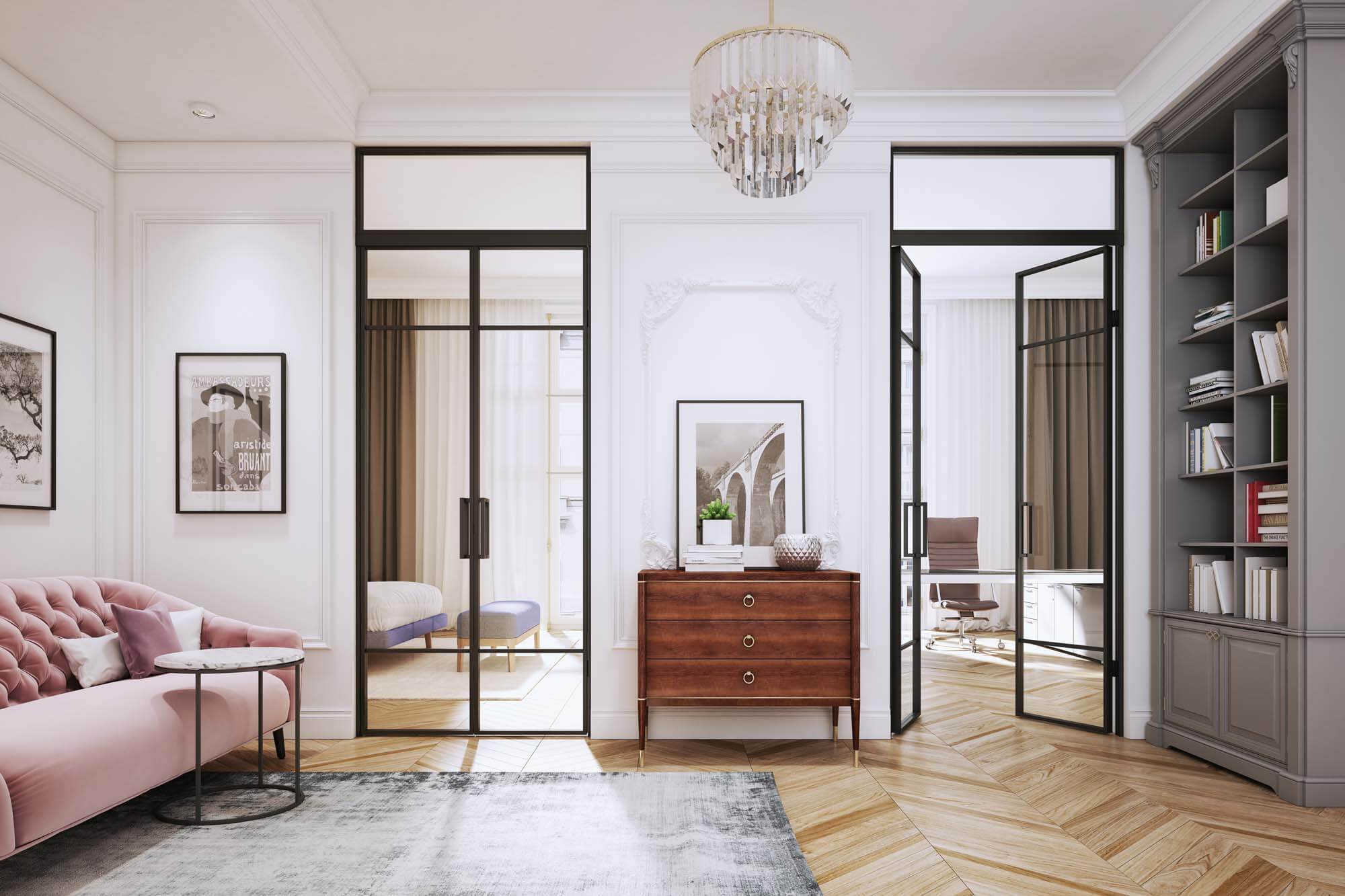 Łącznie szkła ornamentowego, ryflowanego, z nadrukami, podklejanie czy stosowanie przydymionej odmiany idzie w parze z coraz odważniejszymi rozmiarami takich elementów. Szklane drzwi od sufitu po podłogę praktycznie bez szprosów, a jedynie w prostej, wyraźnej ramie, można było dostrzec na wielu ekspozycjach. Stosuje się je zarówno do odgradzania szaf we wnękach jak też w aranżacji pomieszczeń.