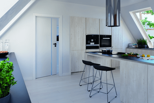 Chcąc zaoszczędzić trochę przestrzeni, warto wybrać drzwi przesuwne. Decydując się na tego typu rozwiązanie w kosztach należy uwzględnić m.in. system przesuwny. W Porta w jego cenę wliczona jest już ościeżnica oraz zamek hakowy i pochwyty boczne w miejscu klamki. Czasem skrzydła wymagają przygotowania ich konstrukcji do wykonania skrótu bądź podcięcia wentylacyjnego (zalecanego do drzwi w wersji łazienkowej). Tego typu usługi w zależności od kolekcji mogą wiązać się z dodatkowymi opłatami.