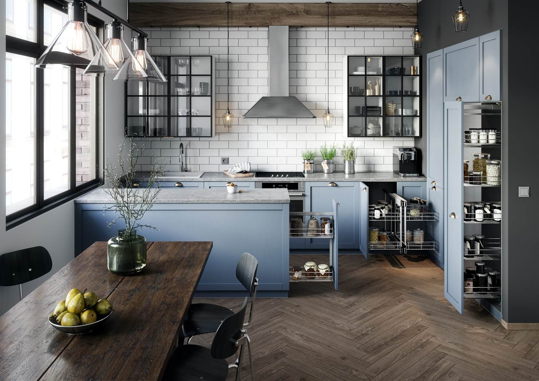 Planując kuchenną zabudowę warto również wykorzystać wszystkie niestandardowe i wydawałoby się kłopotliwe jej elementy. Bardzo często okazuje się bowiem, że stają się one poważnym atutem wnętrza. Przykładem są wnęki. W tych większych urządzić można przytulną strefę jadalną. Mniejsze z kolei warto zabudować. To dobre miejsce na lodówkę lub podręczną spiżarkę. Wysokie szafki, wyposażone np. w wysuwane Cargo Maxi REJS z powodzeniem zastąpią oddzielną, tradycyjną spiżarnię.