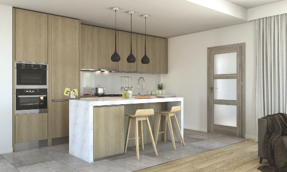 Jeżeli wybieramy skrzydła do sypialni lub gabinetu, najlepsze będą drzwi pełne. Zapewnią odpowiednią izolację akustyczną, dzięki czemu uzyskamy cichy kącik, nawet gdy w salonie biegają dzieci lub włączony jest telewizor. A co zrobić, gdy w pomieszczeniu jest za mało światła dziennego? Wówczas warto postawić na drzwi z przeszkleniami. Efektownym wyborem będą drzwi VERTE z kolekcji N, które doświetlą pomieszczenie, nadając mu niepowtarzalnego uroku. Elementy przeszkleń na skrzydle pozwalają też optycznie powiększyć wnętrze, dzięki czemu sprawdzą się także w mniejszych pomieszczeniach.