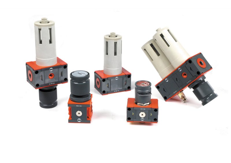 Za przygotowanie powietrza polegające na oczyszczeniu, zredukowaniu ciśnienia do wymaganej wartości oraz w wielu przypadkach wprowadzeniu czynnika smarnego odpowiadają: filtr (F), reduktor (R) lub filtr-reduktor i smarownica (L). Wybór pomiędzy zastosowaniem oddzielnie filtra i reduktora lub filtra-reduktora zależy od wymagań. Filtr-reduktor jest rozwiązaniem bardziej ekonomicznym, jednak umieszczenie w instalacji dwóch oddzielnych urządzeń pozwala na pobór powietrza filtrowanego, ale nie zredukowanego. Jednostkami uzupełniającymi stacje przygotowania powietrza są m.in. zawory odcinająco-załączające łagodnego startu czy przekaźniki pneumoelektryczne. Elementy przygotowania powietrza serii SKILLAIR oraz SYNTESI charakteryzują się pełną modułowością. Oznacza to, że filtry, reduktory, smarownice, zawory łagodnego startu, moduły rozgałęziające i inne elementy można łączyć w praktycznie dowolnych kombinacjach. Do zalet takich stacji należy zaliczyć zwartą budowę oraz wygodę przy wymianie pojedynczego bądź też całego bloku. Jest to możliwe bez demontażu pozostałych elementów lub przewodów zasilających. Seria SYNTESI umożliwia dodatkowo pobór powietrza bezpośrednio z poszczególnych elementów FRL.