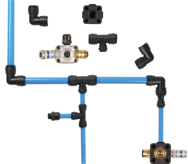 Dobre zaplanowanie połączeń rurowych pozwala na efektywniejsze wykorzystanie maszyn i urządzeń napędzanych sprężonym powietrzem. System SPEEDFIT pozwala na szybką i prostą budowę instalacji, a jego elementy mogą być wielokrotnie łączone i rozłączane bez użycia narzędzi. Umożliwia to łatwe dostosowanie instalacji do potrzeb użytkownika.