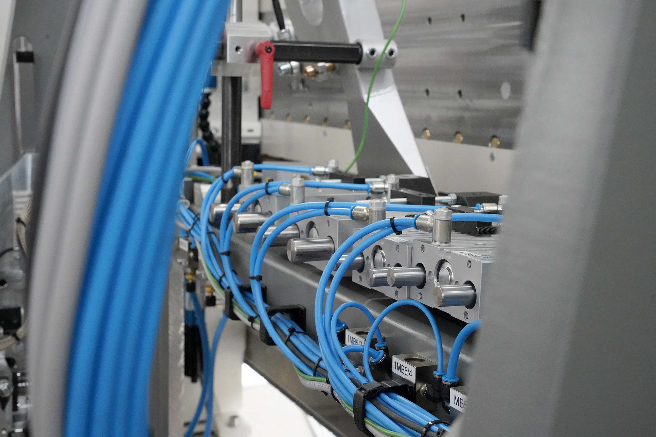 Jednak nie tylko aplikacja kleju stanowiła wyzwanie, należało również uwzględnić plastyczność, ponieważ IMA Schelling używa materiałów o grubości od 0,6 do 1,0 milimetra. Klient potrzebował rozwiązania, które umożliwiałoby aplikację materiału o tej grubości pod kątem prawie 90°.