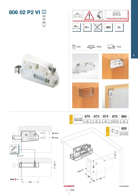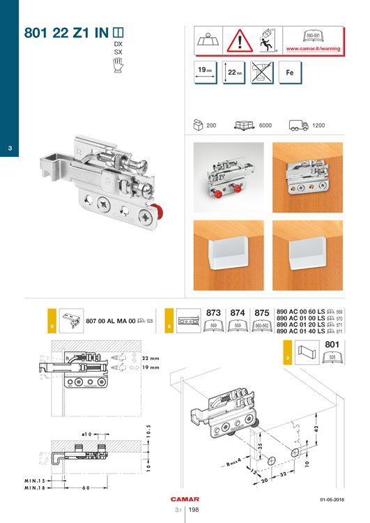 Zawieszki do szafek Camar występują w kilku seriach od 801 do 821 i mają też różne zastosowanie.
